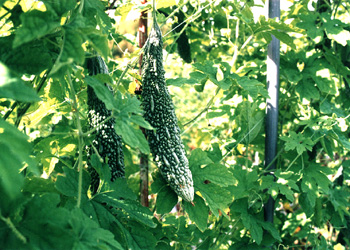 にがうりは、宮崎の特産野菜の1つです。ビタミンCが豊富で、夏のスタミナ食として重宝されています。宮崎の方言では「にがごり」と呼ばれ、広く親しまれています。