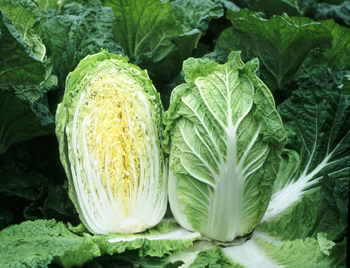 2.外葉は鮮緑色で頭部はよく包被する。球形は胴張りする砲弾型で、球長28cm前後、球重3.0kg前後になる。