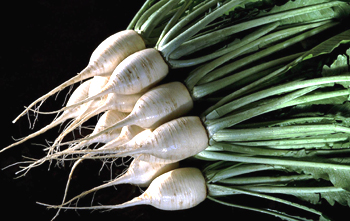 「あきたおにしぼり」は、秋田県鹿角市の伝統野菜「松館しぼり大根」の純血種です。水分は少なく、辛みは非常に強く(在来系統の約3.7倍)、そして甘みもあるので薬味に最適(おろし専用)です。11月上中旬に収穫されます。