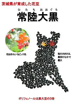 高原豆とも呼ばれる花豆は、煮豆に最も優れ、和菓子の原料としても評価の高い高級インゲンマメです。豆の色が黒一色である「常陸大黒」は、さらに用途が広がる可能性を持っています。