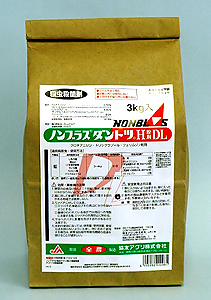 ●ノンブラスは他のいもち病防除剤とは全く異なる構造式と作用機構の化合物「フェリムゾン」に、浸透移行性を持ち、侵入阻止等による予防効果に定評のある「ビーム」を組合わせた水稲殺菌剤です。
