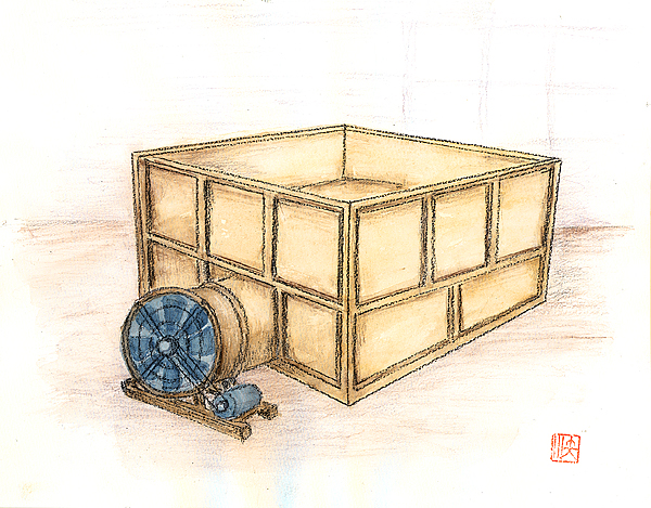 日本中の農家に広く普及していた平型通風乾燥機 【絵:後藤 泱子】
