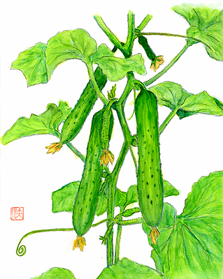 ここでキュウリの品種に触れておこう。わが国のキュウリは、渡来経路から華南系と華北系に大別される。両系ともさらにいくつかの品種群に分かれるが、落合節成は華南系の「青節成」群に属する。