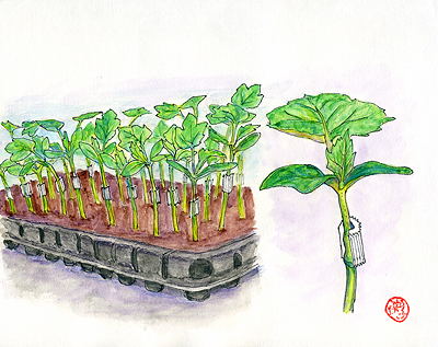 彼はこれを利用して、トレイ上の幼苗を〈居接ぎ〉する手法の開発を思いついた。