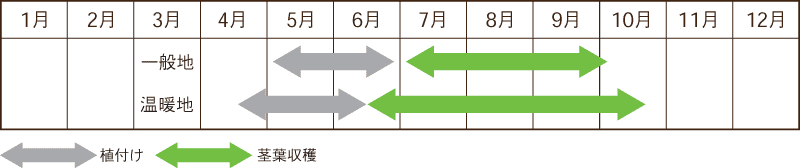 大半の野菜は、収穫してしまったらそれきりですが、「すいおう」の場合には、一度収穫しても、残った茎の節から新しい芽が生長するため、長期間繰り返し収穫できます。