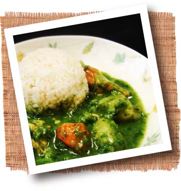 ○すいおう茎葉(生)/50g ○鶏肉/50g ○たまねぎ/50g ○米粉/10g ○じゃがいも/50g ○にんじん/10g ○ガラムマサラ/8g ○塩/少々 ○こしょう/少々 ○コンソメ顆粒またはキューブ/適量