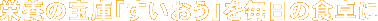 色の濃い野菜の魅力は、すでにご存知のことだと思います。この新食材「すいおう」もその名の通り、深い翠色をした立派な緑黄色野菜の仲間です。生葉はもちろん栄養の宝庫ですが、色鮮やかなまま冷凍保存できるペーストにしてもその栄養価はさほど損なわれません。さらに、粉末など加工食品にすれば、生葉に比べ、一度にたくさんの量を摂ることができます。粉末は混ぜたり、溶かしたりといった利便性が高く、日常の食卓や、飲食店のさまざまな調理に、季節を問わず手軽に展開できることも大きな魅力でしょう。ぜひ、「すいおう」を毎日の食材として活用してください。