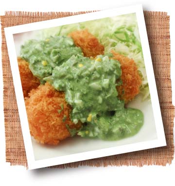 3 すいおうペーストと材料をすべて混ぜあわせ、フライなどにかけて召し上がってください。
