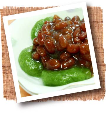 3 ゆで小豆(缶・加糖)を添えていただきます。