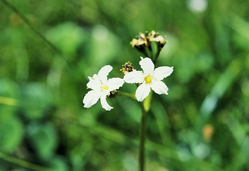 八方尾根を登りながらこの花は気に懸かった。花弁のギザギザからミツガシワと思いながらどうも納得しないでいた。栂池で名札を見てやはり違うのかと合点した。 秋の立山室堂で黄色くなった葉が目に残ったが、その花がこれかと初対面で、あわてて写真に納めた。