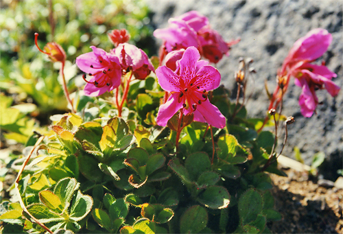もう陽が西に傾く頃、礼文知床の燈台近くの草原で見た。それまでも何回か見過ごしたが、この日のフラワーウオッチングも終りに近く、 夕日に映える花に翌日の晴天を祈って写した。