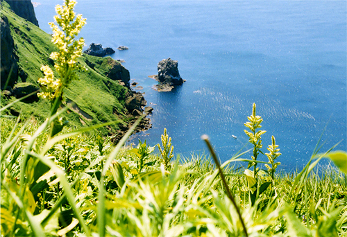礼文ではほとんどの花園の果ては海である。この花も北国の美しい海をバックに一段浮き立っていた。桃岩の美しい海がバックで無かったら、写真を撮らなかったであろう。