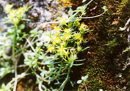 宿近くの湿った木陰のコケの上に根を張っていた。どこから花でどこから葉なのか、ハッキリしない。植えたものか自生のものかも明確でない多肉の植物である。 最初は高尾でみた記憶がある。