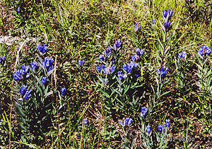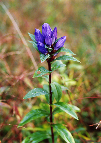山では紫の色に出会うことはそんなに多くない。その中でリンドウの紫はいつみてもスッキリ涼しい。霧を含んでスッと立っている姿にほれぼれしてしばらく見とれていた。 花屋の店先で見る賑やかな栽培種の切り花とは全く違った印象であった。