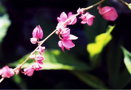 帰化植物のためかあまり注目されないが、竹富の暑い日差しの中、ハイビスカスやブ−ゲンビリアの派手さに負けず、石垣に垂れている姿が印象的であった。 現地ではニトベカズラという。