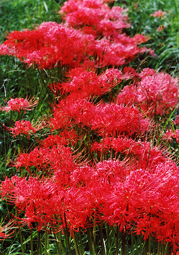 田の畦は真赤だった。これほどの面積のこれほどの群生はみたことがなかった。墓の花だとか、毒を含むとか言われるが、艶やかで情熱的で、燃えているようであった。