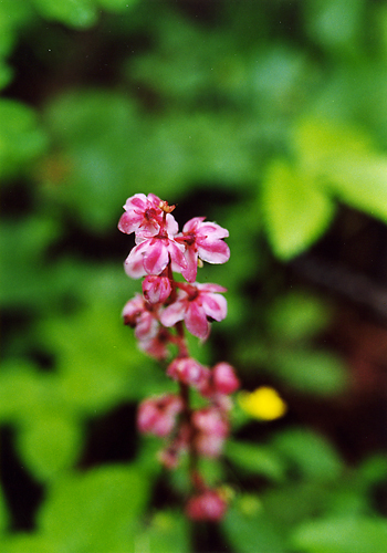 (イチヤクソウ科)| 三陸海岸への道すがら、休憩に寄ったそこはこの花の群生地であった。10年も前に一度だけ1株だけ出会った思い出がよみがえって非常に嬉しかった。 白樺林の下草に雨に濡れていた。葉を揉んで傷薬にしたり、脚気の内服薬に用いたりで、一薬草と書くという。美しいだけでなく昔は貴重な草であったろう。 |