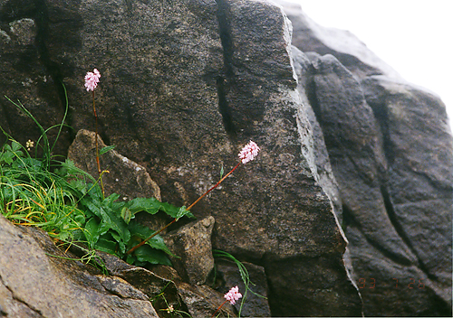 | 同じトラノオと名が付いてもサクラソウ科のものとタデ科のものではまるっきり味わいが違う。 タデ科のこの花はその中でもトラノオと思わせない地味な味わいをもっている。早池峰のサルバシゴを登るあたり、大きな岩の前で、 風にそよぎながら存在を主張していた。 |