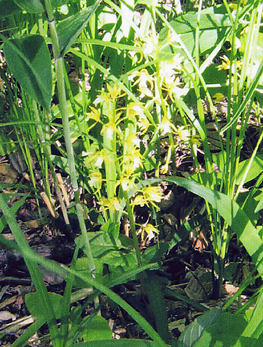 思ったよりも苦労した森の遊歩道もどうやら先が見えて元気を取り戻したころ、草にまぎれて1株咲いていた。もちろん同定はできないが、ランに違いない。 黄色というか金というかすっと立ち上がって気品に富む。この旅行でおそらくもっとも貴重な出会いだと思う。