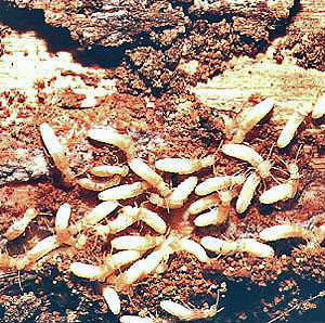 シロアリの偏食熱帯地方に旅をすると、ゴム園や畑の中に大きな「蟻塚」をよく見かける。「蟻塚」とはいうが、本当はシロアリの巣である。 中には数十万〜数百万のシロアリが棲んでいるらしい。